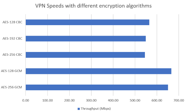 Throughput speeds (in Mbps) using DH Group 14 (2048-bit) PFS: