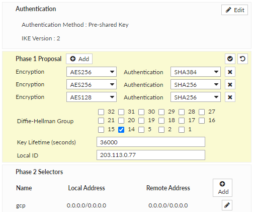 3 thoughts on “VPNs to Google Cloud Platform (GCP) when FortiGate is behind a NAT gateway