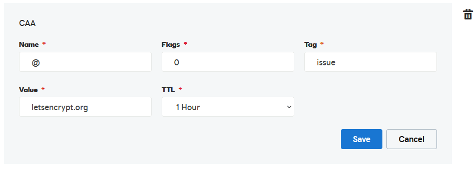 DNS CAA Records in GoDaddy DNS Manager October 20, 2021 J5 Here’s how to do a CAA record in GoDaddy DNS when using LetsEncrypt Share this: Click to share on X (Opens in new window) X Click to share on Facebook (Opens in new window) Facebook Like Loading... Related